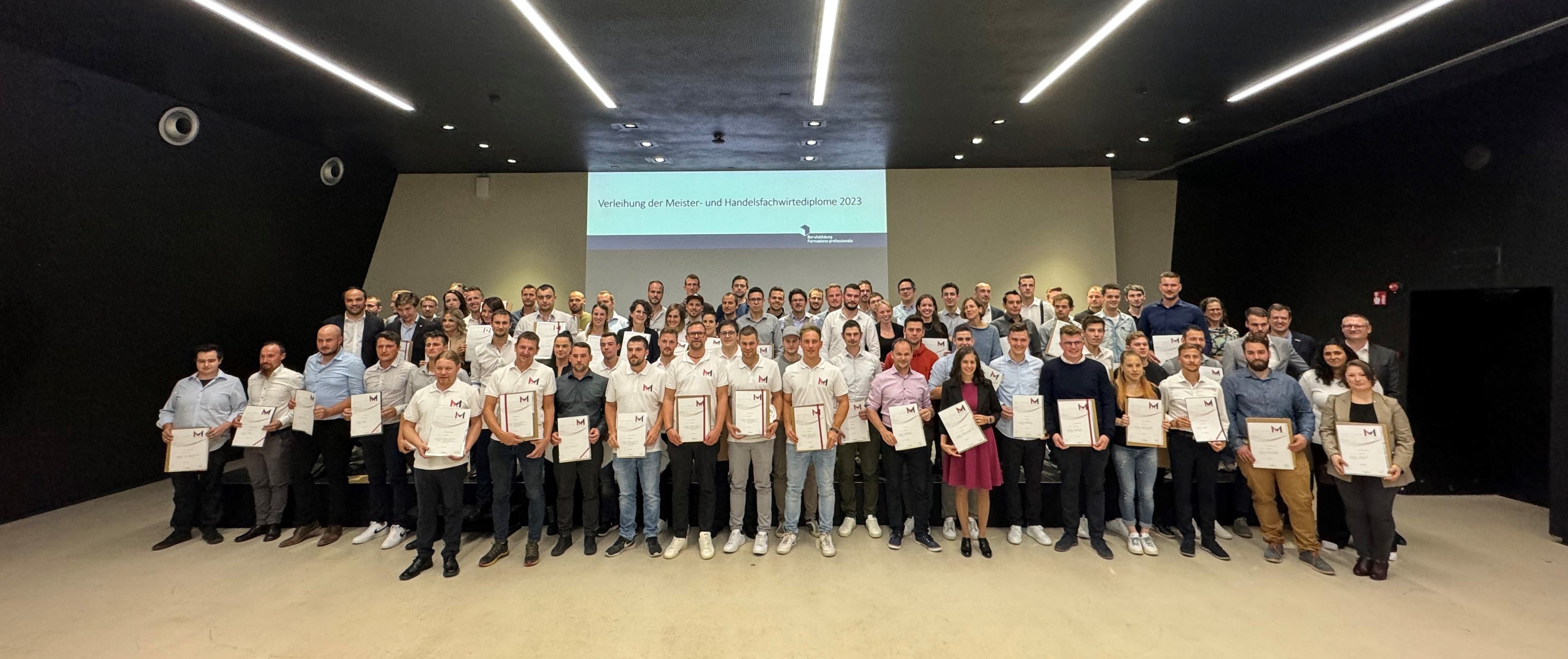 18 Maestre, 68 Maestri Professionali, due Tecniche e un Tecnico del Commercio hanno completato con successo un percorso formativo molto impegnativo: lavorando, hanno frequentato corsi da 1.000 o più ore, ed in seguito hanno superato i relativi esami. I partecipanti hanno dovuto dimostrare le competenze tecniche acquisite nella teoria e nella pratica. Le Tecniche e i Tecnici del Commercio hanno completato un corso part-time di un anno di circa 380 ore, acquisendo conoscenze e competenze nei settori della gestione aziendale, degli acquisti e della logistica, del marketing del commercio, della leadership e della comunicazione.