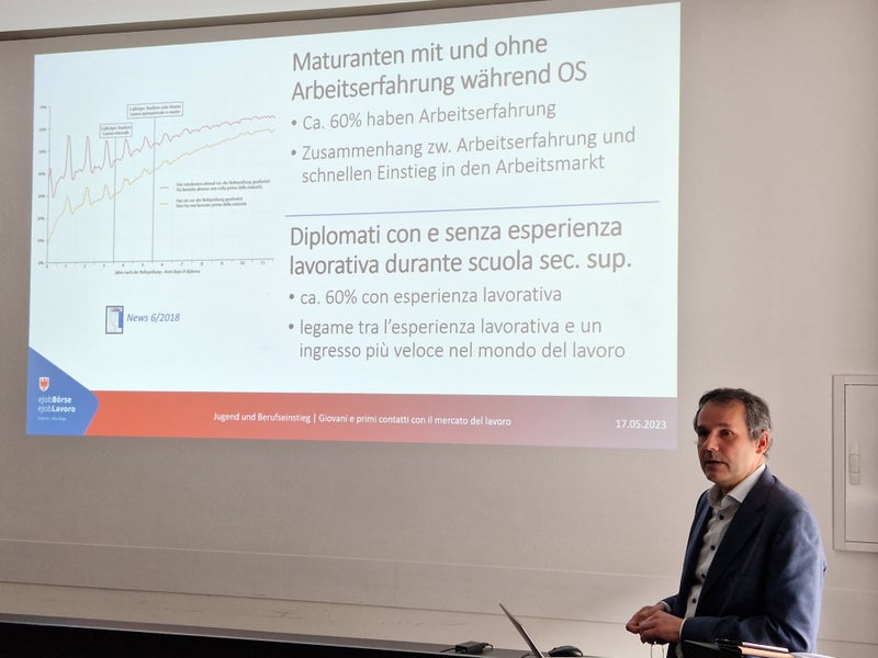 - Il direttore del Servizio Mercato del lavoro, Stefan Luther, illustra dati e analisi dello studio "Giovani e primi contatti con il mercato del lavoro" (Foto: ASP/mdg) » [IMG 2 MB]