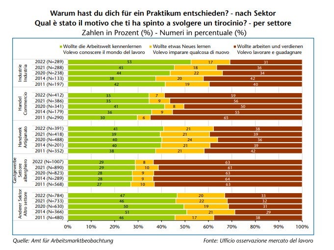 Nell'estate 2022 il numero di tirocini estivi e di aziende di tirocinio ha raggiunto un livello record. Ma come valutano la loro esperienza i tirocinanti? E qual è stata la qualità dei tirocini stessi? Le informazioni in merito sono fornite dal 9° sondaggio del Servizio Mercato del lavoro, al quale hanno partecipato circa 2.900 dei circa 6.900 tirocinanti estivi del 2022, sondaggio al quale sono dedicati i due nuovi numeri della rivista Mercato del lavoro-News, Mercato del lavoro-News 04/2023 e Mercato del lavoro-News 05/2023.