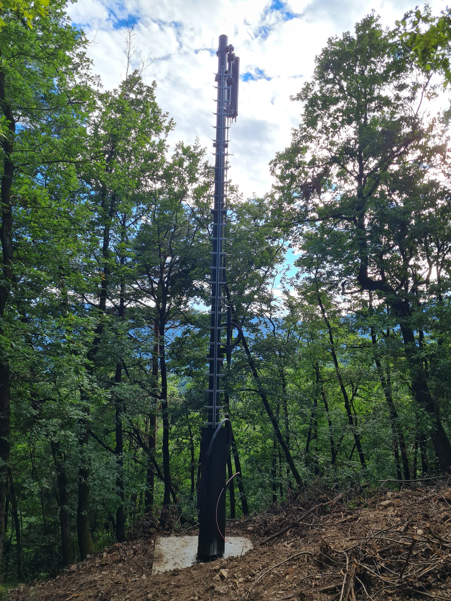 - Il pilone di trasmissione installato nel bosco di Monticolo (Foto: RAS) » [IMG 812 kB]