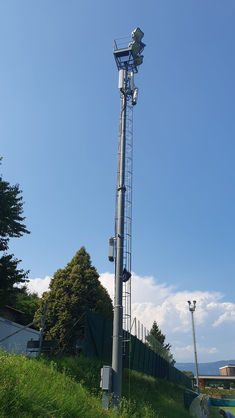 - Il pilone e l'antenna di trasmissione installati al centro sportivo di Maso Ronco (Foto: RAS) » [IMG 2 MB]