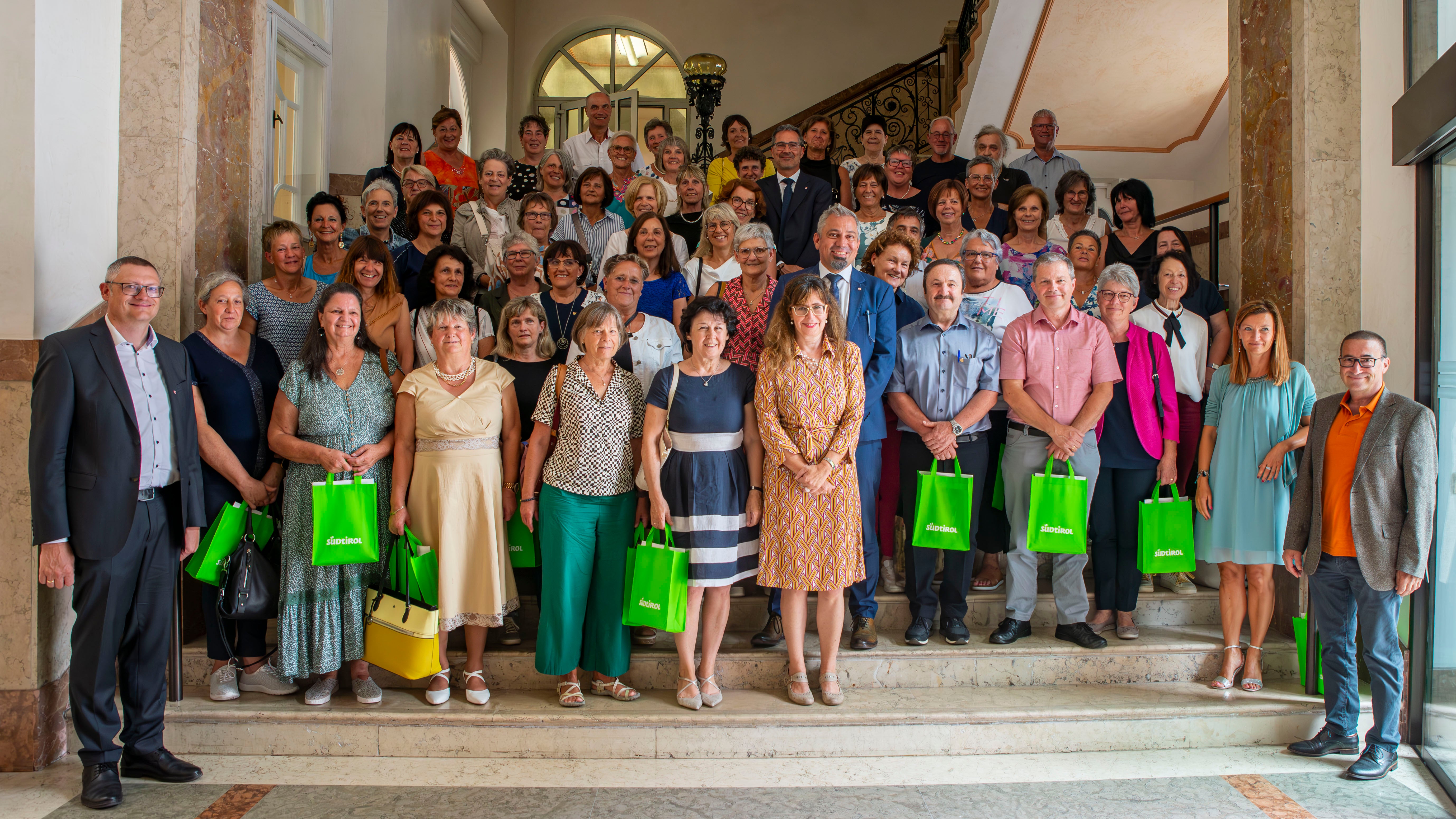 - Uno dei quattro gruppi di pensionati, in onore dei quali nei giorni scorsi è stata fatta una cerimonia di saluto a Palazzo Widmann a Bolzano (Foto: ASP/Greta Stuefer) » [IMG 2 MB]